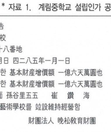 계림중학교 설립인가 공고 _만송재단
