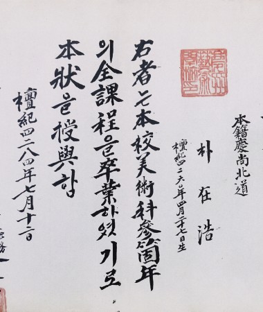 경주예술학교 1회 졸업생 박재호 3년제 졸업장