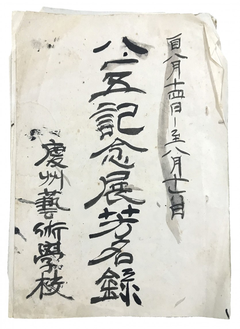 - 경주예술학교에서 주최한 미술전람회 방명록이다. 경주예술학교는 1946년 1947년 해방기념전람회를 개최했다. 그러나 방명록에 주최자가 경주예술학교로 표기되어 있어서 예술학교로 승격된 이후인 1950-1952년 사이에 진행된 전시로 보인다.