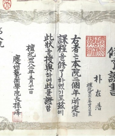 경주예술학교 제1회 졸업식 박재호 2년제 수료증서