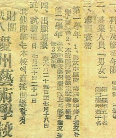 경주예술학원(慶州藝術學院) 전도(前途)에 기대(其待), 구월 일일(九月一日) 개(開)교