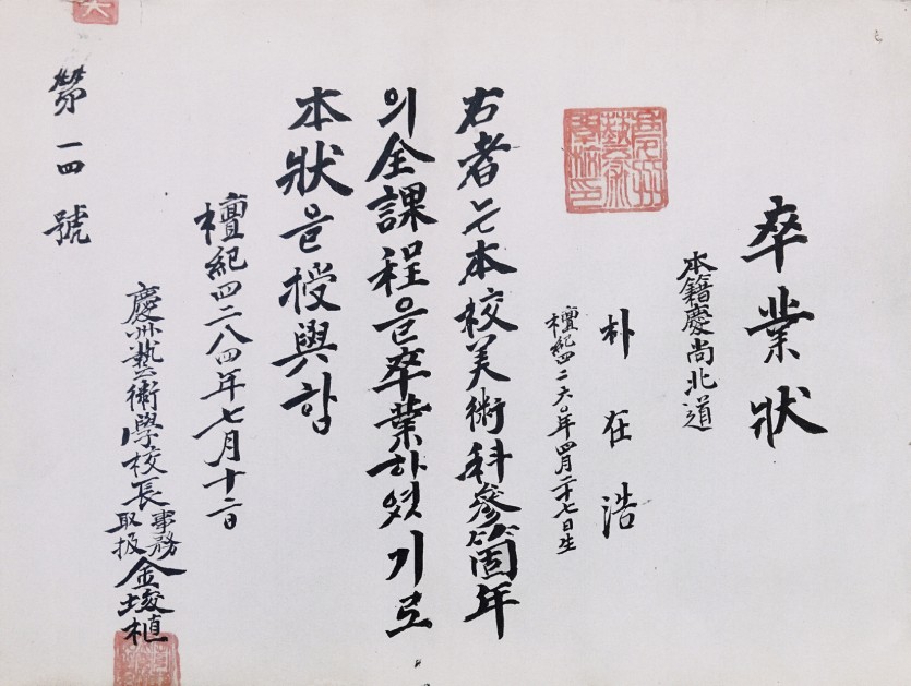 경주예술학교 제1회 졸업식 박재호 2년제 수료증서