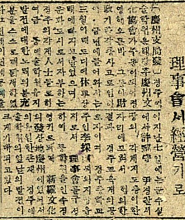 문중 재산(門中財産) 또 희사(喜捨) 경주학교(藝術學校)에 최찬해씨(崔贊海氏)의 이 열성(熱誠)