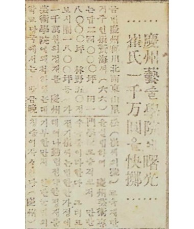 경주예술학원(慶州藝術學院)에 서광(曙光) 최씨(崔氏) 일천만원(一千万圓)을 쾌척(快換)