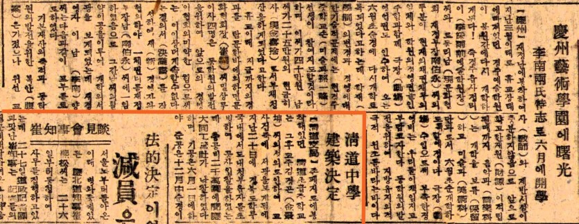 경주예술학원(慶州藝術學院)에 서광(曙光) 이남양씨(李南兩氏) 특지(特志)로 6월에 개학(開學)