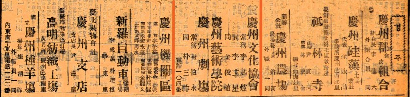 경주문화협회(慶州文化協會) 상무(常務) 이기현(李起炫) 동 藝術學院) 경주극장(慶州劇場) 상무(常務) 남백영(南伯永) 동 (同) 이호성(李호星) 동(同) 김준식(金俊植) 경주예술학원(慶州(同) 박삼조(朴三祚) 전화(電話) 104번(一O四番).