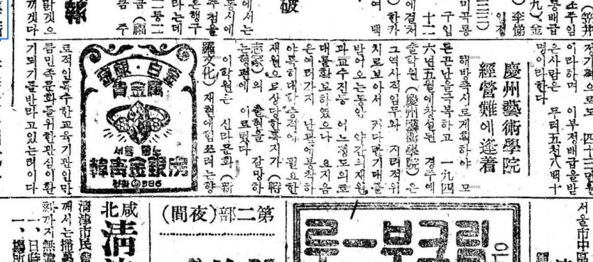 해방 즉시로 게획하야 모든 곤난을 극복하고 1946(一九四六)년 5(五)월에 창설된 경주예술학원(慶州藝術學院)은 그 역사적 임무와 지려적 위치로 보아서 커다란 기대를 받어오는 동안 약간의 재원과 교수진 등 어느 정도의 토대를 확보하였으나 요지 음은 여러가지 난관에 봉착하야 특히 대학승격에 필요한 재원으로 상당한 특지가(特志家)의 출현을 갈망하는 형편에 이르렀다. 이 학원은 신라문화(新羅文化)재현에 힘쓰려는 향토적인 특수한 교육기관인 만큼 민족문화를 위한 관심이 환기되기를 바라고 있는 터이다.
