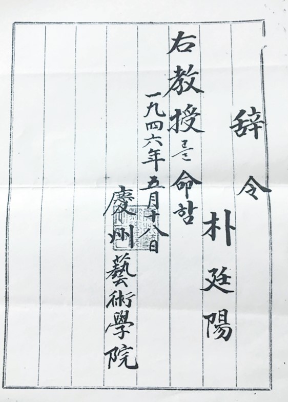 음악과 박정양 경주예술학교 교수 사령 (1946.05.08)