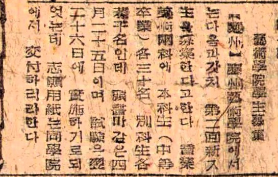 - 경주문화협회 시기, 예술학교의 학생모집을 알리는 기사