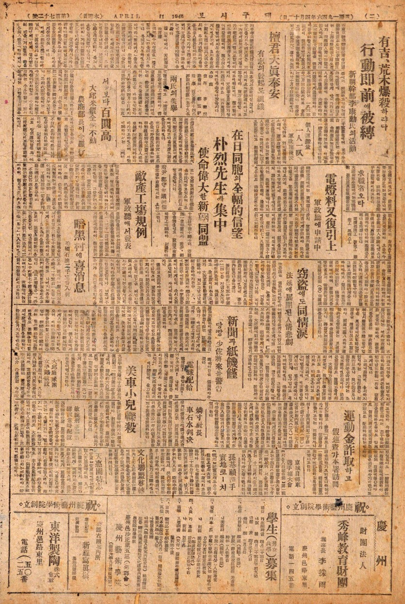 - 대구시보에는 이후 4월 13일, 4월 15일, 4,18일까지 연속으로 경주예술학원창립을 축하하고 학생 모집 요강에 대한 기사를 싣고 있다.
