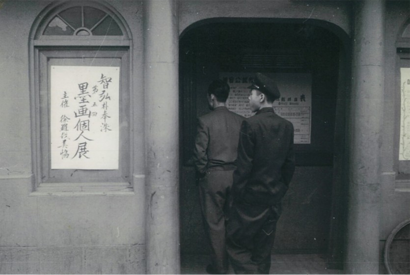 경주극장은 당시 경주문화협회가 결성된 후 경주예술학교의 초기 2년 동안 학교의 설립과 운영뿐만 아니라 경주극장, 감포극장, 안강극장, 포항극장에서 음학회를 개최했고, <해방기념미술전람회>, <해방 1주년 기념전람회> 등 적극적인 예술 대중화 운동을 이어간다. 이 사진의 경주극장에서는 지홍 박봉수의 묵화개인전을 서라벌협회 주관으로 전시회의 포스터가 게시되어 있다.
