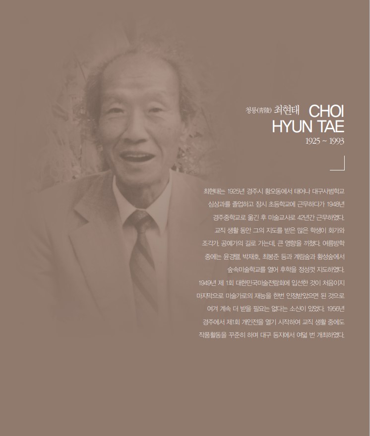 문화협회 회원이자 1948년 9월부터 42년간 경주중학교에 재직하며 후학양성에 힘썼던 서양화가 청릉 靑陵 최현태 崔賢泰(1925~1993)와, 경주예술학교 1회졸업생