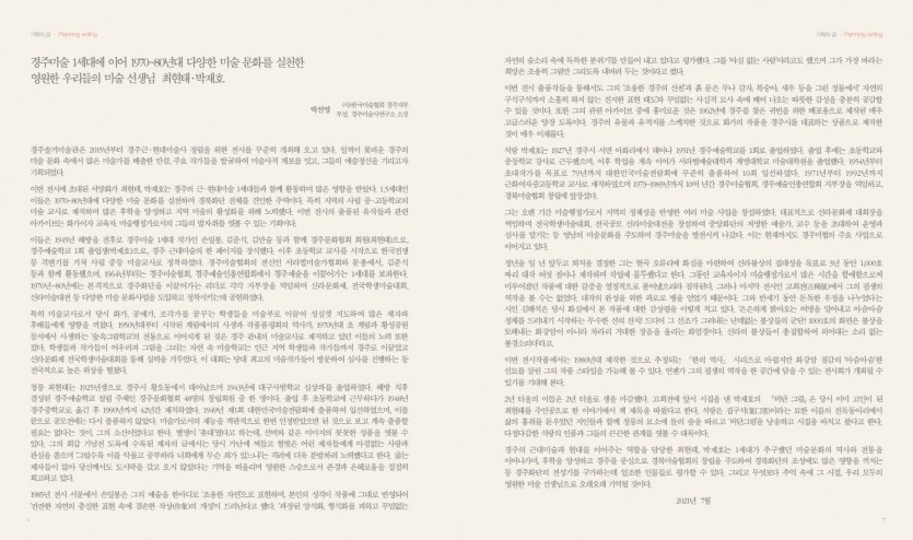 그들의 주요 작품을 통해 예술정신을 살펴보고 특히 후학양성을 위해 숲속미술학교 운영과 지역미술의 활성화를 위해 노력을 아끼지 않았던 활동들을 여러 자료들